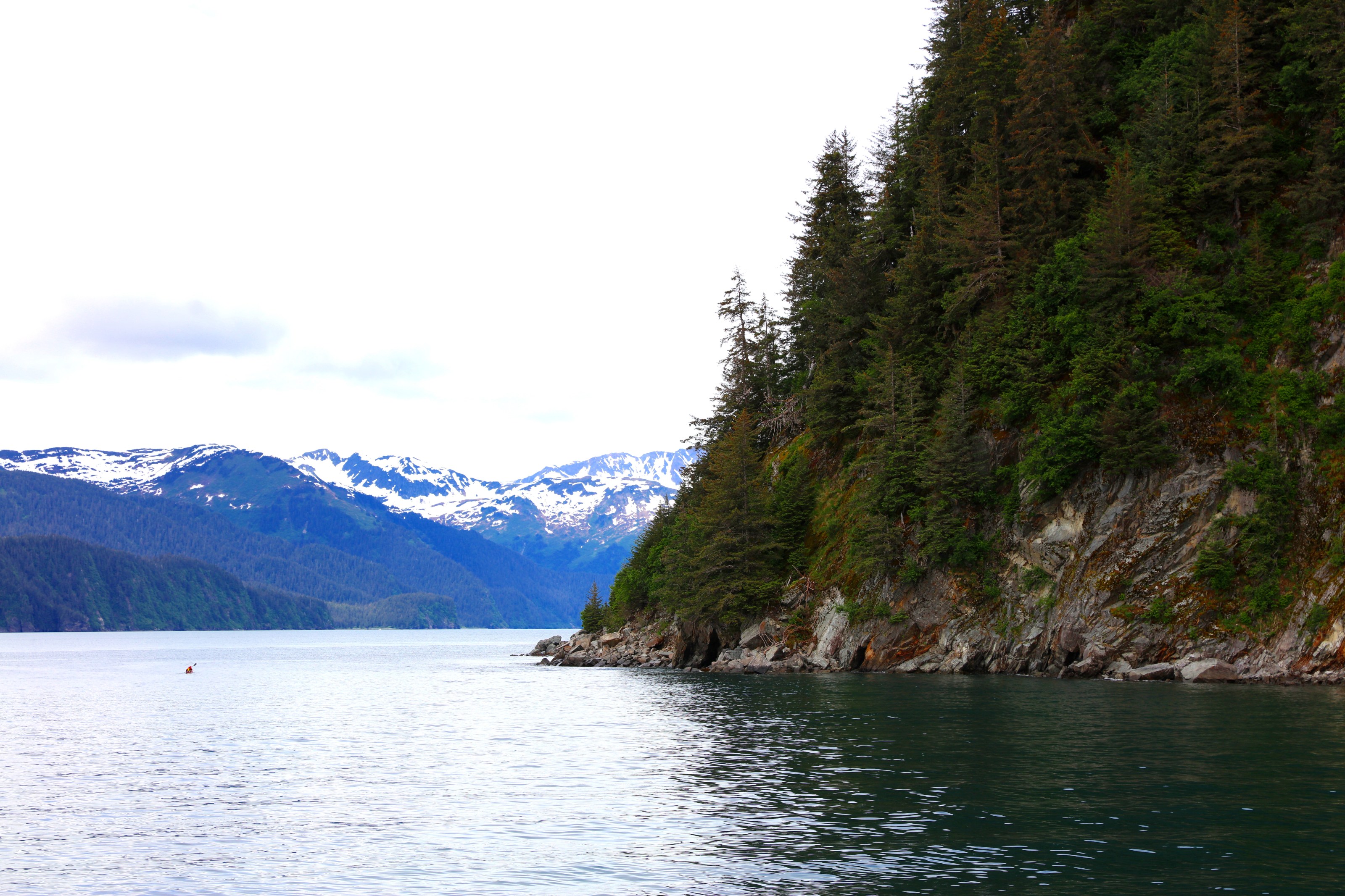 From Tonsina Beach you must walk the rest of the hike on the low tide. It is all coastline the next 3 miles. The trail goes past eagle’s nests, 1,000-foot cliffs, and tidal streams bulging with big silver salmon in late July and August. You may share this fishing hole with a few kayakers camped amid the driftwood, but otherwise your only company will be the sea otters, sea lions, eagles and breaching whales. Mid to late August is peak salmon spawning season.